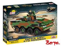 Pojazd z klocków przedstawiający współczesny Kołowy Transporter Opancerzony Rosomak zaprojektowany na potrzeby Wojska Polskiego.