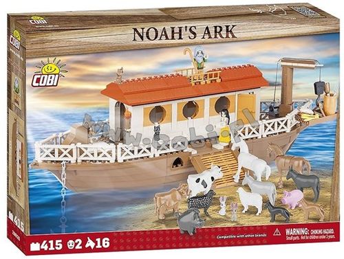COBI Arka Noego 28026 Zestaw klocków nawiązujący do biblijnej opowieści o Arce Noego. Zgodnie z przekazami religii mityczna Arka została zbudowana by ocalić świat przed Potopem. Do jej budowy wytypowano Noego, jedynego człowieka prawego i sprawiedliwego. Aby przeczekać katastrofę - Potop Noe miał w niej umieścić siebie, swoją rodzinę i po parze wszystkich niepływających zwierząt.Zbuduj swoją Arkę Noego i znajdź w niej schronienie dla Noego, jego rodziny i 8 par zwierząt (16 figurek). Zabawka dla dziecka: 6 lat + Ilość elementów: 415 Wymiary zabawki: 43,5 x 13,5 cm Ilość figurek: 18 Waga (z opakowaniem): 0,65 kg