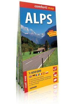 dwustronnie laminowana, wygodna w składaniu mapa samochodowa Alp stan dróg 2010 szczegółowa kategoryzacja i numeracja dróg odległości drogowe w kilometrach ośrodki narciarskie wraz z największymi wyciągami opisy głównych pasm górskich oraz najważniejszych szczytów i przełęczy plastyczna rzeźba terenu, lasy, parki narodowe skorowidz miejscowości