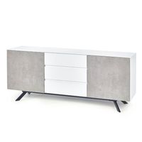 Modne i stylowe meble do Twojego salonu! Kolekcja Concrete została stworzona dla wszystkich, którzy pragną aby salon był miejscem modnym, nowoczesnym, funkcjonalnym, a także gustownym. Concrete to wysmakowane zespolenie intrygujących połączeń z minimalistyczną bryłą mebla wspartą na nowoczesnej, mocnej stalowej podstawie. Stylu kolekcji dodają fronty połyskującej bieli wraz z ciekawym akcentem szarości betonu. Nowoczesna kolorystyka, połączona z nietuzinkowymi frontami mebla, idealnie współgra z ciekawą podstawą. Warto również zwrócić uwagę na funkcjonalność komody - wyposażona została w trzy pojemne szuflady oraz drzwi, które pozwolą na zaprowadzanie ładu. Sylwetka mebli doskonale wkomponuję się w nowoczesne wnętrza, ale również te industrialne i loftowe nawiązujące do przemysłowego stylu, w których świetnie sprawdzą się betonowe fronty. Ergonomiczny i doskonale zaprojektowany model to możliwość by czerpać z tego co najlepsze pod względem funkcjonalnego użytku i estetyki.
