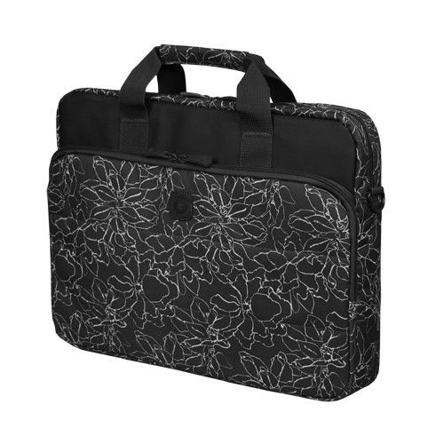 Wygodna torba na laptopa idealna do użytku codziennego. Torba posiada dwie zewnętrzne kieszenie pozwalające przenosić nie tylko laptopa ale również dodatkowe akcesoria jak np. myszka czy dokumenty. Wewnątrz znajduje się dodatkowe kieszenie, w tym jedna z bezpiecznym zapięciem na rzep. Torbę można przenosić zarówno w ręce jak i na ramieniu przy pomocy dołączonego paska. Wykonana z dwóch materiałów - nylonu oraz poliestru zapewni wysoki poziom komfortu użytkowania. Torba posiada elegancki motyw graficzny. Laptop wsadzany od góry.