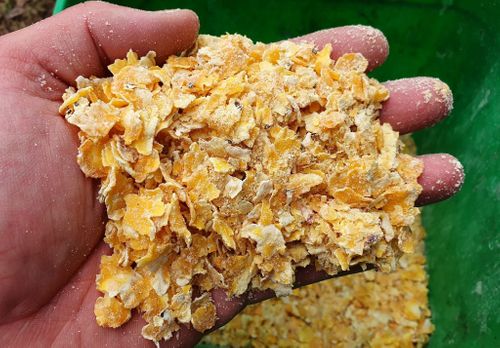 Kukurydza w formie płatków, preparowana, prasowana i suszona. Wystarczy wsypać płatki do wiaderka i zalać wodą, można delikatnie namoczyć, aby można było kleić kule, albo można dodać więcej wody, aby uzyskać smugę zanętową. Wraz z wodą wskazane jest dodawanie dipów i boosterów, wtedy nadajemy zanęcie pożądany aromat. Do naszych płatków można dodawać: