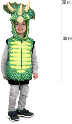 Kostium wykonany jest z przyjemnego w dotyku, miękkiego materiału. Jest wygodny w noszeniu, sięga do pasa, nie powoduje podrażnień ani alergii. Łatwo się go zakłada i ściąga. Posiada nakrycie głowy do złudzenia przypominające głowę dinozaura z rogami, dziecko będzie pod wrażeniem. Gdy dziecko się przebierze będzie nie do poznania. Sprawdź, warto!