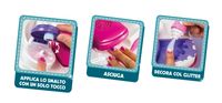 Zestaw zawiera najnowszą kolekcję lakierów do paznokci Crazy Chic, praktyczne zdobienia, wiele szablonów i ultra-glamour brokat!