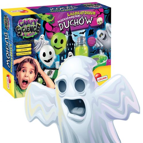 W Laboratorium przerażających duchów dzieją się rzeczy niecodzienne! Razem z tym zestawem dzieci mogą wykonać slime, które świecą w ciemności i inne eksperymenty naukowe używając proszku fluorescencyjnego, który sprawi, że ich twory będą świećić po zmroku. Crazy Science to nowa seria gier Lisciani w której dzieci zagłębiają się w naukowy świat z przymrużeniem oka. Przez całą serię towarzyszy im Cillo - zabawna bakteria, która przedstawia kolejnych naukowców i krok po kroku opisuje w jaki sposób bezpiecznie wykonać doświadczenia.