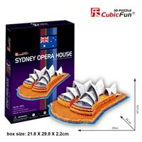 Opakowanie zawiera puzzle 3D, które umożliwiają złożenie modelu Opera Sydney.