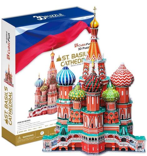 Opakowanie zawiera puzzle 3D, które umożliwiają złożenie modelu XL - Sobór Wasyla Błogosławionego. Pasjonująca zabawa dla dzieci oraz kolekcjonerów najsłynniejszych budowli świata. Do ich złożenia nie potrzeba żadnych narzędzi. Puzzle są ponumerowane i znajdują się w specjalnych arkuszach.