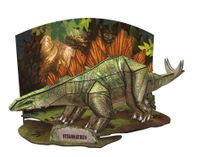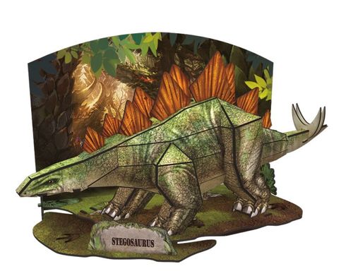 Opakowanie zawiera puzzle 3D, które umożliwiają złożenie modelu Stegosaurus.