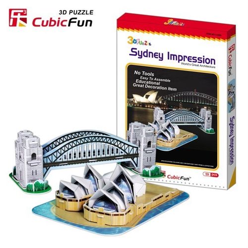 Opakowanie zawiera puzzle 3D, które umożliwiają złożenie modelu Sydney Impression.