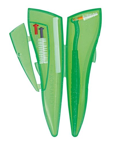 Szczoteczki z tej serii idealne czyszczą resztki pokarmowe, bakterie czy osad w przestrzeniach międzyzębowych oraz w okolicach aparatów ortodontycznych. Dzięki poręcznemu zestawowi możemy dbać o higienę jamy ustnej w każdym miejscu. Uchwyt jest niewielki, ergonomiczny, wykonany z plastiku z mechanizmem zatrzaskowym do mocowania końcówek.