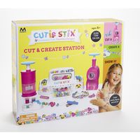 Zestaw Studio to Twoja mała pracownia koralików, którymi ozdobisz wszystko co tylko chcesz. Już teraz możesz stworzyć naszyjniki, bransoletki, ozdoby na sznurki czy też dekorację na ścianę. Zestaw zawiera wszystkie niezbędne elementy, które potrzebne są do stworzenia własnego wzoru dekoracji. Potnij sztyfty, aby zrobić koraliki. Dzięki specjalnemu dziurkaczowi zrobisz otwory w koralikach. Za pomocą nawlekacza będziesz mogła stworzyć naszyjniki, bransoletki i inne ozdoby. Dodatkowo możesz stworzyć ozdoby na paznokcie! Kolekcja Cutie Stix zawiera również tematyczne zestawy uzupełniające dzięki, którym będziesz miała jeszcze więcej wzorów do wyboru. Sprzedawane oddzielnie. A więc do dzieła, tnij, twórz i pochwal się!