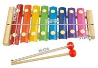Tęczowe cymbałki to idealna zabawka edukacyjna dla najmłodszych, aby zapoznać ich z muzyką i być może zaszczepić muzyczną pasję na dalsze lata. 8 metalowych blaszek w drewnianej oprawie pozwoli na zagranie 8 różnych tonów (pełna gama), a tym samym doskonale sprawdzi się w graniu prostych melodii. Wystarczy delikatnie uderzyć dołączonymi do zestawu pałeczkami, aby wydobyć z nich dźwięk. Głośność zależy od mocy uderzenia.