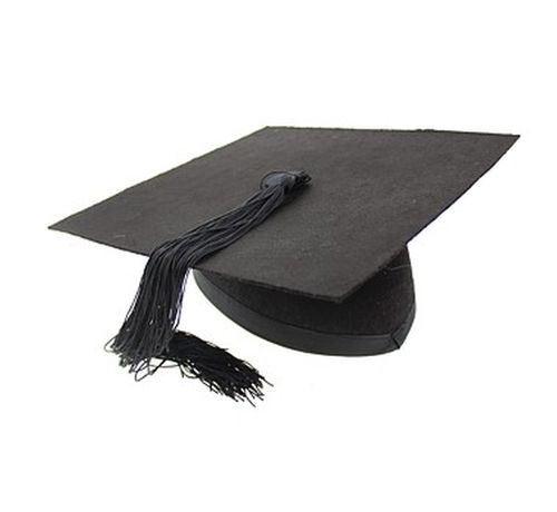 Czapka absolwenta wykonana z materiału podobnego do filcu w kolorze czarnym. Składa się z dwóch części, łączonych za pomocą rzepa. Obie części czapki są usztywnione. Rozmiar uniwersalny.