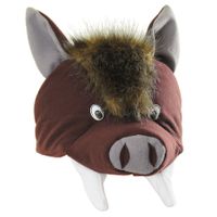 Czapka wykonana z materiału przypominającego welur z uszami, noskiem i kłami dzika. Z tyłu gumka pozwalająca dopasować czapkę do obwodu głowy. Rozmiar uniwersalny.