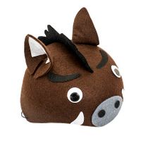 Czapka wykonana z filcu, w brązowym kolorze z ruchomymi oczami i uszkami, na gumkę pod brodą.