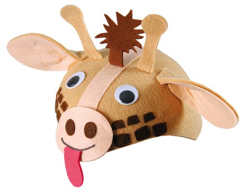 Czapeczka filcowa z gumeczką pod bradą w kształcie żyrafy. Rozmiar uniwersalny.