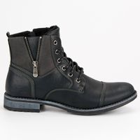 Mckeylor Czarne botki z suwakiem na płaskim obcasie to buty dla mężczyzn na sezon jesienno-zimowy do użytku na co dzień. Wykonano je ze skóry ekologicznej. Posiadają usztywniony zapiętek oraz podeszwę z bieżnikiem z tworzywa sztucznego. Wewnątrz prezentowanych butów znajduje się wygodna wkładka z futerka.