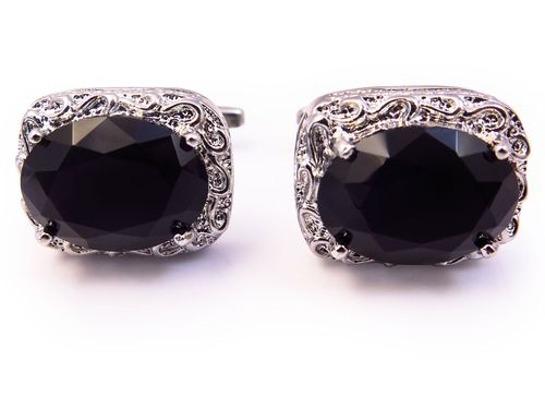 Czarne spinki do mankietów w stylu gotyckim.