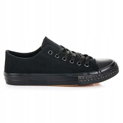 Czarne, sznurowane trampki to nie tylko modny dodatek do miejskich, sportowych stylizacji, ale także niezwykle wygodne buty na co dzień. Wykonane zostały z solidnej, wytrzymałej tkaniny, wygodnej i przyjemnej w użytkowaniu. Gumowany nosek doskonale zabezpiecza obuwie przed uszkodzeniem. Miękka, bieżnikowana podeszwa zapewnia komfort i bezpieczeństwo podczas codziennego użytkowania butów.
