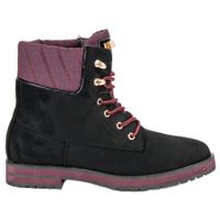 Ideal Shoes Czarne traperki na płaskim obcasie to casualowe buty dla kobiet na sezon jesienno-zimowy. Dzięki wkładce oraz ociepleniu z koca obuwniczego doskonale radzą sobie z niskimi temperaturami panującymi w tym okresie. Wykonano je z wysokiej jakości zamszu ekologicznego i materiału tekstylnego.