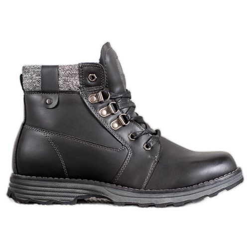 Traperki w uniwersalnym czarnym kolorze mają solidne podeszwy stanowiące doskonałą izolację od podłoża i zapewniające wygodę podczas chodzenia. Te stylowe buty damskie wykonane z ekologicznej skóry mają cholewki sięgające za kostkę ze sznurowaniem umożliwiającym odpowiednie dopasowanie i ocieplone wnętrze.