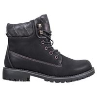 Wygodne traperki damskie w kolorze zawsze modnej czerni. System sznurowania pomaga idealnie dopasować obuwie do naturalnego kształtu stopy. Podeszwa z bieżnikiem gwarantuje wygodę w czasie chodzenia. Buty będą pasować do stylizacji codziennych, jak i sportowych. Spodobają się paniom w bardzo różnym wieku.