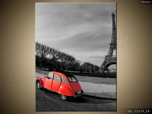 Czerwone auto przy Wieży Eiffla