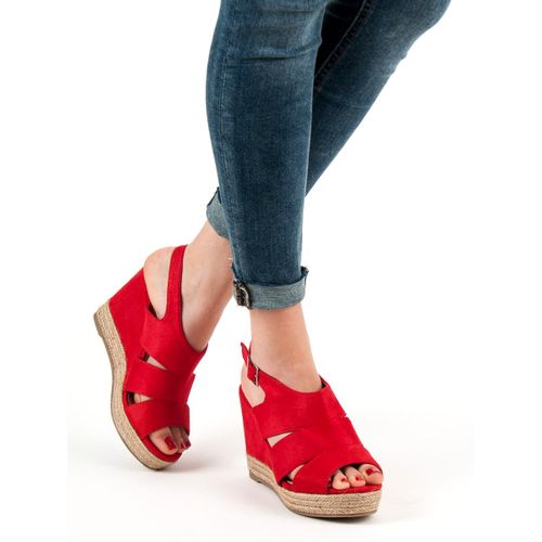 Best Shoes Espadryle Damskie Czerwone Ze skóry ekologicznej