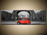 Czerwony samochód przed Wieżą Eiffla