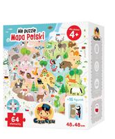 Duża, pełna zabawnych szczegółów układanka zachęci nie tylko czterolatki do wycieczek palcem po mapie i zainspiruje do zdobywania wiedzy o Polsce. Układanie puzzli to pomysł na wspólną zabawę, która rozwija małą motorykę, ćwiczy spostrzegawczość i cierpliwość, a przede wszystkim sprawia mnóstwo radości. Aby pobudzająca ciekawość i wyobraźnię zabawa trwała jeszcze dłużej do zestawu dołączono 16 figurek.