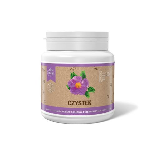 Czystek znalazł zastosowanie w żywieniu psów i kotów ze względu na wysoki poziom polifenoli – lotnych substancji zapachowych o szerokim spektrum. Jego regularna podaż korzystnie wpływa na zmianę zapachu ciała zwierzęcia co czyni go mniej atrakcyjnym dla pasożytów zewnętrznych takich jak kleszcze, pchły czy komary. Czystek jest bogatym źródłem antyoksydantów, a jego regularne stosowanie podnosi naturalną odporność na infekcje wirusowe. Przyczynia się do wzmocnienia organizmu oraz podniesienia jego naturalnej bariery ochronnej. Dzięki właściwościom hamującym wydzielanie histaminy wycisza reakcje alergiczne widocznie przyczyniając się do złagodzenia objawów uczuleniowych. Dodatkowo fenylokwasy zawarte w czystku pozytywnie stymulują pracę wątroby i trzustki.