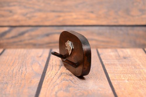 Wyjątkowy wieszak drewniany z wizerunkiem pieska rasowego.