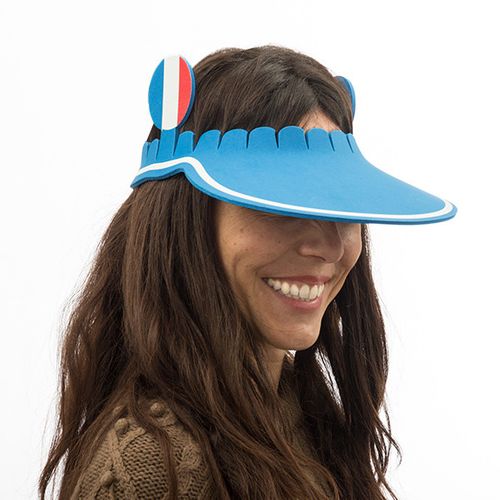 Niech nic Ci nie przeszkodzi w świętowaniu zwycięstwa Twojej drużyny! Daszek z Flagą Francji będzie Cię chronił przed słońcem podczas meczów na świeżym powietrzu. Wyprodukowany z gumy EVA. Łatwy w zakładaniu. Przybliżone wymiary: 22,5 x 0,5 x 31 cm.