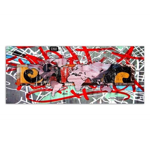 Ozdobny deco panel Mapa Świata - Graffiti nada charakter Twojemu wnętrzu.