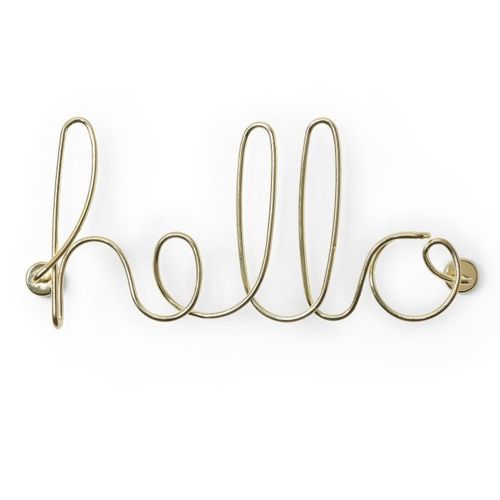 Chyba każdy pragnie witać swoich gości w nadzwyczajny sposób. Nic prostszego! Dekoracja ścienna Hello marki Umbra to nietuzinkowy gadżet, który pomoże dodać ścianie charakteru i optymistycznego akcentu. Wygięty w napis Hello drut z metalu z powłoką w kolorze mosiądzu ucieszy każdego, kto przekroczy nasz próg. Forma napisu stylizowana jest na wygląd neonu, a sposób mocowania tj. w pewnej odległości od ściany, pozwala stworzyć na ścianie interesujące cienie w zależności od padania światła.