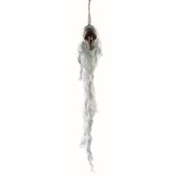 Dekoracja wisząca - czaszka wykonana z tworzywa sztucznego połączona z białą, zwiewną siateczką. U góry jest sznureczek do powieszenie dekoracji. Długość - ok. 40 cm. Wymiary czaszki - 5 x 3 cm