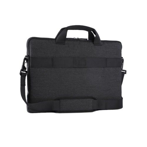 Pokrowiec Dell Professional 14 chroni notebooka z ekranem o przekątnej 14" wszędzie tam, gdzie zaprowadzi Cię dzień wytężonej pracy. Zewnętrzna warstwa w kolorze wrzosowej szarości jest również wodoodporna, co zabezpiecza komputer przed warunkami pogodowymi. Wnętrze wyściełane ciemnolazurowym pluszem chroni notebooka przed zarysowaniami i uszkodzeniami. Komputer można bezpiecznie przenosić przy użyciu rączek pokrowca lub odłączanego, regulowanego paska na ramię. Wygodny zamek błyskawiczny zapewnia szybki dostęp do wszystkich niezbędnych przedmiotów, które można przechowywać w przedniej przegrodzie organizatora.