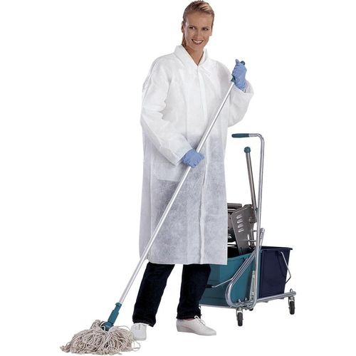 BLUZA BLOUSPO BLUZA Z WŁÓKNINY POLIPROPYLENOWEJ KOLOR BiałyBluza. Włóknina polipropylenowa 35 g/m². Zapinanie na 4 zatrzaski. Kołnierz koszulowy. Rękawy wszywane. 2 dolne kieszenie naszywane. Przystosowana do kontaktu z żywnością. Opakowanie jednostkowe. Wyrób nie jest środkiem ochrony indywidualnej, ale środkiem higienicznym lub przeznaczonym do prac brudzących. 100% włóknina polipropylenowa : 35 g/m²