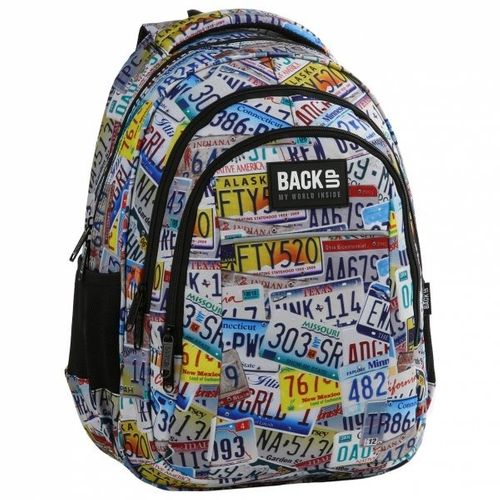 Plecak BackUP model H 41 w ciekawy wzór, ułożony ze zdjęć autentycznych tablic rejestracyjnych z najbardziej rozpoznawanych stanów USA. Ten plecak to prawdziwa gratka nie tylko dla miłośników podróży, ale również dla amatorów motoryzacji.