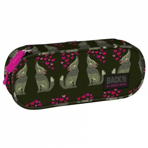 Piórnik BackUP model A 52 najsłodsze, zakochane wilczki jakie mieliście okazję poznać są bohaterami najnowszej kolekcji. Spokojna, stonowana kolorystyka w odcieniach khaki została wykończona różowymi serduszkami. Wyposażenie: - wewnętrzny organizer na 5 ołówków - wewnętrzna klapka z organizerem i zapinaną kieszenią - podszewka z nadrukiem logo - podwójny ściągacz zamka - rozmiar 23 x 9 x 5 cm.