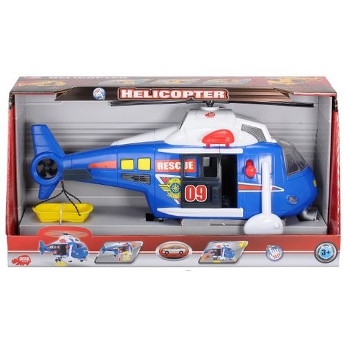 Niebieski Helikopter na baterie, emituje ĆwiatĆo, wydaje dĆșwiÄki. ĆmigĆowiec wyposaĆŒony jest we wyciÄ