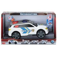 InterceptorZabawka Dickie Samochód policyjny to ciekawa zabawka dla wszystkich chłopców, którzy uwielbiają policyjne pościgi. Biało niebieski radiowóz to masywny pojazd, który ma możliwość transformacji z osobowego auta w masywną terenówkę. Umożliwia to ponoszone zawieszenie. Dzięki temu zabawa może mieć świetne warianty – miejskie lub terenowe pościgi. Dodatkowym atutem są efekty świetlne i dźwiękowe. Jest fantastycznym pomysłem na prezent dla malucha od 3 roku życia. Jest to trwała zabawka wykonana z bezpiecznych materiałów.Wiekod 3 latWymiarydł. 32 cm, op. 41,5x23,2x14,1 cm