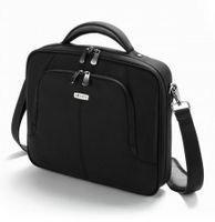 Bezpieczeństwo notebooka gwarantuje wzmocniona konstrukcja , amortyzowana z każdej strony komora (pianka HDF).Ponadto komputer można zabezpieczyć specjalnym paskiem mocującym, dzięki czemu pozostaje on na jednym miejscu. Telefon komórkowy, długopisy, wizytówki oraz dokumenty są zawsze pod ręka w przegrodach w specjalnie zaprojektowanej przedniej kieszeni. Z tyłu torby znajduje się otwarta kieszeń na dokumenty lub drobne akcesoria. Miękka i specjalnie zaprojektowana rączka, wygodny pasek na ramię oraz możliwość przymocowania do wózka zapewniają komfort podczas noszenia. MultiCompact wykonana jest z poliestru. Jakość oraz funkcjonalność oraz atrakcyjny wygląd- to cechy charakteryzujące nową kolekcję Multi.Dicota oferuje różnorodność modeli, wymiarów, tak aby każdy mógł znaleźć torbę spełniającą jego wymagania.