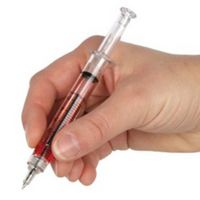 Kup Długopis-Strzykawkę w najlepszej cenie. Ten fantastyczny długopis wygląda jak prawdziwa strzykawka! W środku Długopisu-Strzykawki znajduje się czerwony płyn, który swoim wyglądem przypomina krew. Długopis-strzykawka zawiera wymienny niebieski wkład, dzięki czemu możesz go używać tak długo, jak chcesz. Długopis-Strzykawka to świetny pomysł na oryginalny prezent w doskonałej cenie. Przy zakupie 36 sztuk gablotka gratis.
