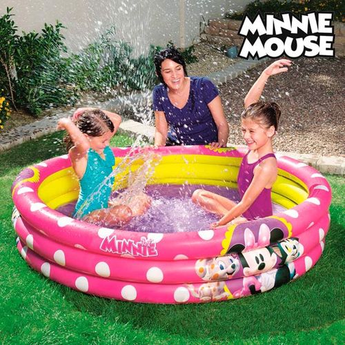 Ochłódź maluchy na Swoim tarasie, w ogrodzie lub na plaży z dmuchanym basenem Minnie. Przybliżone wymiary (średnica x wysokość): 152 x 30 cm. Przybliżona pojemność: 282 L. Wyposażony w zawory bezpieczeństwa. Zawiera zestaw do naprawy przebić. Zalecany wiek: +2 lata.