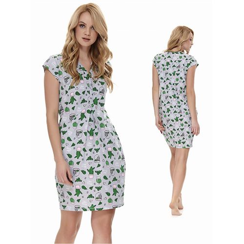 Niezwykle komfortowa i przy tym urocza koszula nocna. Model z krótkim rękawem. Dekolt okrągły z wygodnym zapięciem na guziki. Idealna propozycja na wiosenne i letnie noce. Została wykonana z wysokogatunkowej bawełny, która w połączeniu z wygodnym fasonem daje maksymalny komfort noszenia. Doskonale sprawdzi się w ciąży, a także przy karmieniu maleństwa.