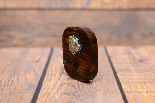 Wyjątkowy wieszak drewniany z wizerunkiem pieska rasowego.