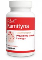 - Właściwości:Dolvit Karnityna to karma uzupełniająca zalecana do stosowania w okresie wzmożonej aktywności fizycznej psów. Wskazana również w powrocie do prawidłowej sylwetki dla psów z nadwagą. Psom dorosłym i w starszym wieku dodaje energii witalnej.