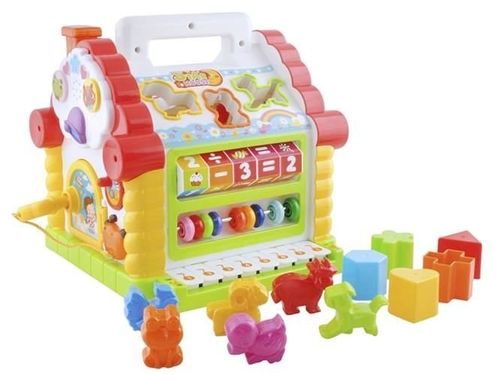 Zabawka umożliwia naukę dopasowywania oraz porównywania przedmiotów, prezentuje zasadę działania zamka i dźwigni, pomoże w nauce liczenia i podstawowych zasad muzyki. Rozwinie zdolności Twojego maluszka. Domek posiada cztery interaktywne płaszczyzny i dach.