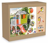 Z dwoma oknami z przesuwanymi żaluzjami, drzwiczkami, drabinką do wchodzenia, werandą i zjeżdzalnią o długości 150 cm.